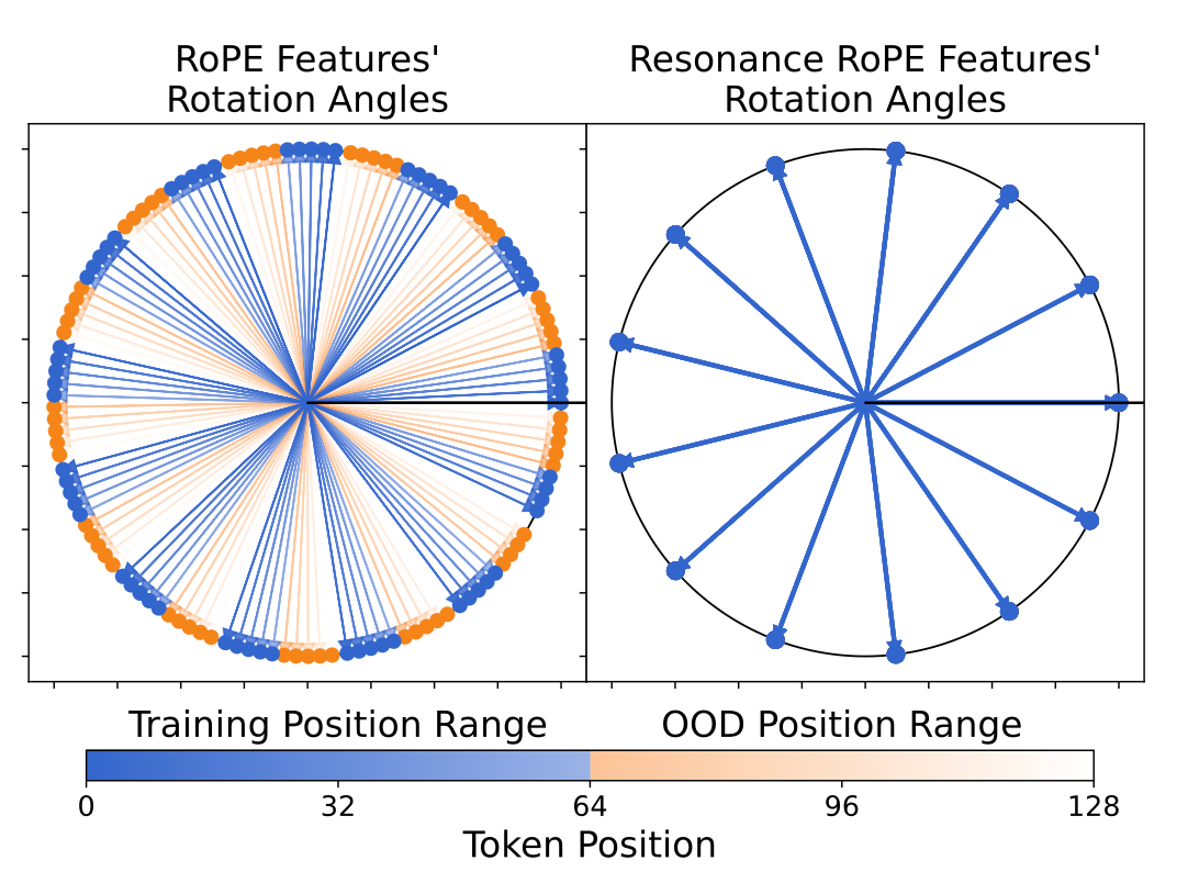 Resonance RoPE addresses this by rounding wavelengths to the nearest integer. A wavelength of 10.3 becomes 10. Now positions 0, 10, 20, 30… all show identical rotation angles. When the model sees position 80 or 120 during inference, these align perfectly with positions seen during training. The model doesn’t need to generalize to new rotation angles. This applies to all dimensions with wavelengths shorter than the training length. For these dimensions, Resonance RoPE provably eliminates the feature gap between training and inference positions. The rounding happens offline during model setup, so there’s no computational cost.